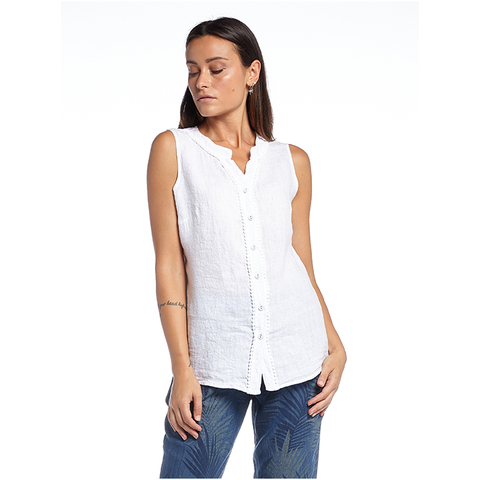 Tùy Chỉnh Phụ Nữ V Cổ Tank Không Tay Tops 100% Linen Thoáng Khí Dệt Thiết Kế Mới Nhất Cho Mùa Hè